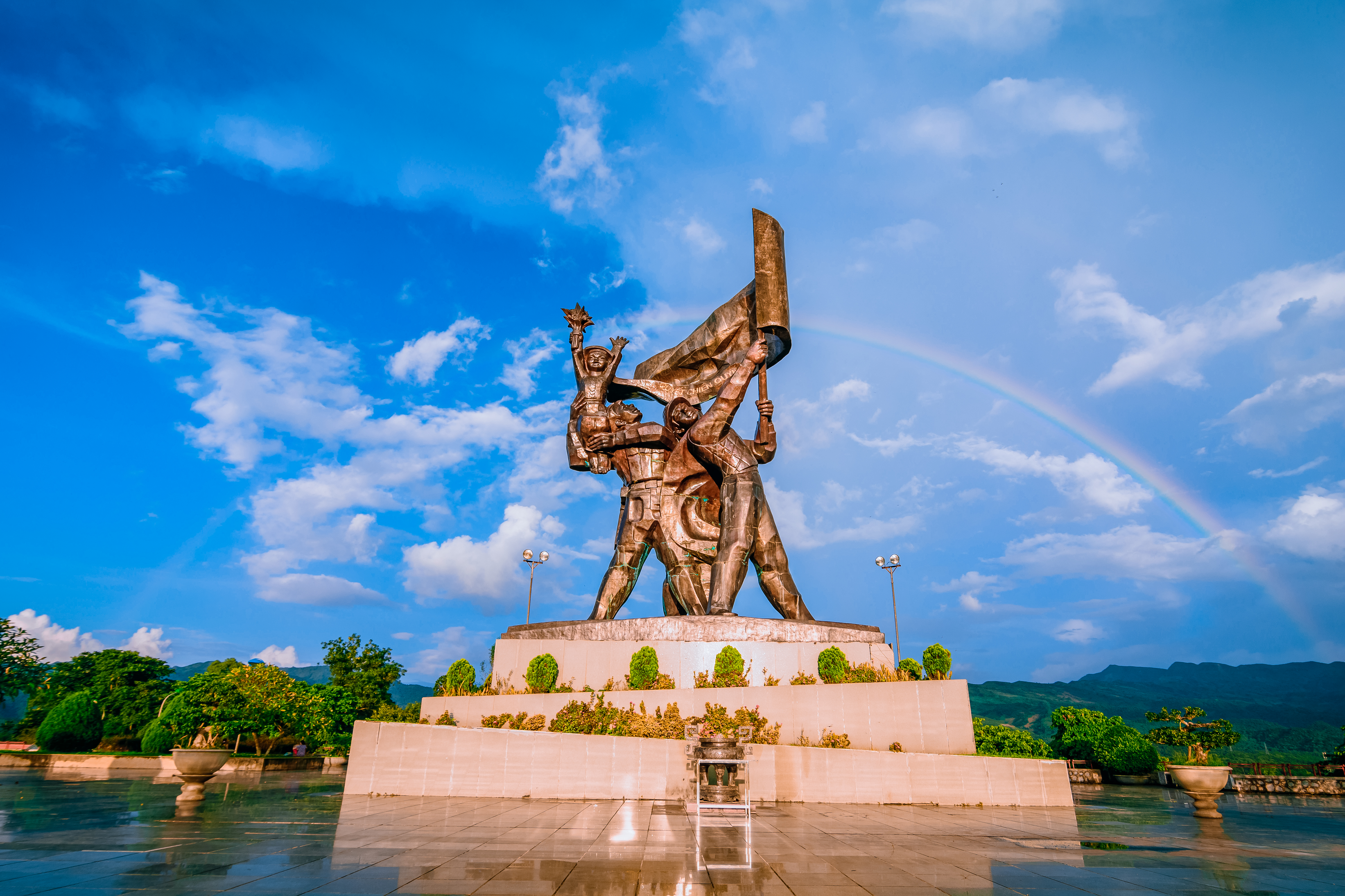 Điểm khởi đầu lên Tượng đài là sân hành lễ rộng 3.000m², một không gian quan trọng để tổ chức các hoạt động văn hóa, giáo dục truyền thống của tỉnh vào tối thứ Bảy hàng tuần, các dịp lễ, Tết. Những hoạt động này không chỉ nâng cao mức hưởng thụ văn hóa tinh thần cho người dân mà còn phục vụ nhu cầu tham quan của du khách. Đồng thời, đây cũng là cơ hội để bảo tồn, phát huy giá trị văn hóa dân tộc và quảng bá các sản phẩm du lịch đặc sắc của Điện Biên và vùng Tây Bắc.